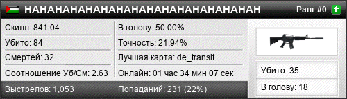 | de_transit | 62 | 5.17 | 2.16 | 1 | 22 | 00:28:42 | 14.07.2019 | |