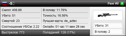 | de_aztec | 29 | 5.80 | 1.38 | 1 | 13 | 00:21:02 | 27.06.2016 | |