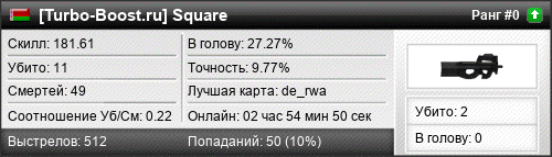 | de_dust2 | 3 | 0.50 | 0.27 | 2 | 8 | 00:11:08 | 06.10.2016 | |