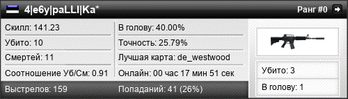| de_westwood | 5 | 1.67 | 0.91 | 1 | 4 | 00:05:31 | 05.11.2015 | |