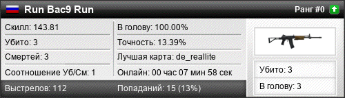 | de_reallite | 3 | 1.00 | 0.38 | 1 | 6 | 00:07:58 | 26.07.2016 | |