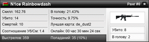 | de_inferno | 6 | 2.00 | 0.45 | 1 | 8 | 00:13:12 | 06.11.2015 | |