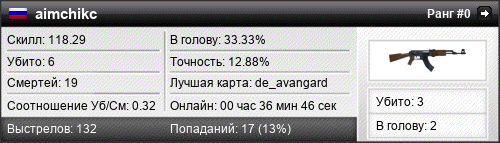 | de_avangard | 3 | 0.60 | 0.23 | 1 | 10 | 00:12:48 | 06.11.2015 | |