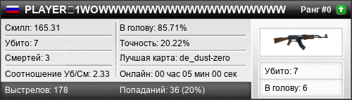| de_dust-zero | 7 | 2.33 | 1.40 | 0 | 4 | 00:05:00 | 01.01.1970 | |