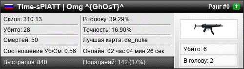| de_dust | 4 | 2.00 | 0.61 | 3 | 5 | 00:06:31 | 31.08.2016 | |