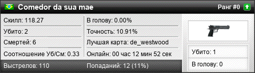 | de_westwood | 2 | 0.50 | 0.25 | 1 | 6 | 00:08:05 | 05.09.2016 | |