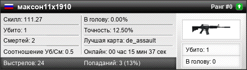 | de_assault | 1 | 0.50 | 0.06 | 1 | 10 | 00:15:37 | 06.09.2016 | |