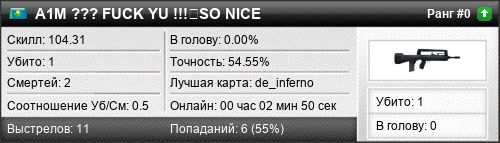 | de_inferno | 1 | 0.50 | 0.35 | 1 | 2 | 00:02:50 | 11.09.2016 | |