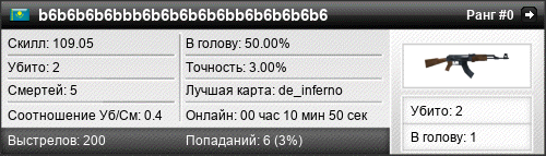 | de_inferno | 2 | 0.40 | 0.18 | 2 | 7 | 00:10:50 | 08.11.2015 | |