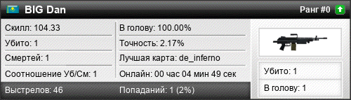 | de_inferno | 1 | 1.00 | 0.24 | 1 | 3 | 00:04:08 | 17.09.2016 | |