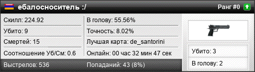 | de_arsenal | 2 | 0.67 | 0.27 | 2 | 4 | 00:07:27 | 21.09.2016 | |