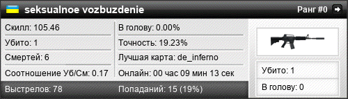 | de_inferno | 1 | 0.17 | 0.11 | 4 | 5 | 00:09:13 | 09.11.2015 | |