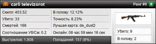 | de_mirage | 1 | 0.09 | 0.04 | 5 | 17 | 00:24:33 | 12.11.2016 | |