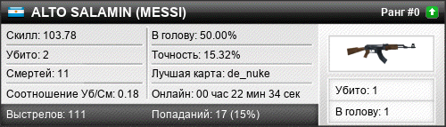 | de_nuke | 2 | 0.22 | 0.10 | 1 | 12 | 00:20:15 | 16.10.2016 | |