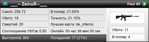 | de_inferno | 11 | 1.10 | 0.49 | 1 | 15 | 00:22:22 | 18.10.2016 | |