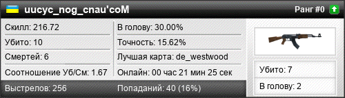| de_westwood | 9 | 2.25 | 0.51 | 1 | 12 | 00:17:32 | 24.10.2016 | |