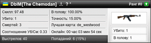 | de_westwood | 1 | 0.33 | 0.26 | 2 | 3 | 00:03:54 | 24.10.2016 | |