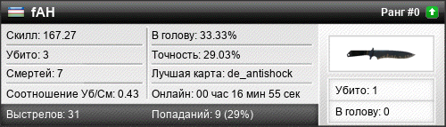 | de_antishock | 3 | 0.43 | 0.42 | 1 | 7 | 00:07:13 | 01.07.2019 | |