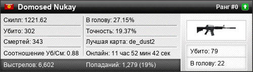 de_nuke | 26 | 0.87 | 0.37 | 4 | 43 | 01:10:45 | 06.12.2016 |