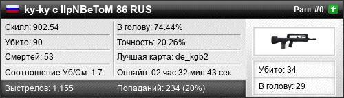 | de_kgb2 | 18 | 1.50 | 0.98 | 2 | 16 | 00:18:20 | 19.11.2016 | |