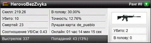 | 13.04.2018 @ 08:47 - 08:48 | de_cbble | 00:01:05 | 1 | 1 | 0 | 0.00% | 22.22% | 207.57 |