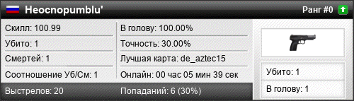 | de_aztec15 | 1 | 1.00 | 0.38 | 1 | 1 | 00:02:38 | 21.10.2015 | |