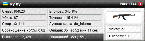 | 23.11.2025 @ 16:22 - 16:23 | de_union | 00:01:26 | 0 | 1 | 0 | 0.00% | 7.14% | 736.77 |