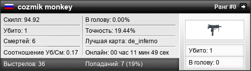| de_inferno | 1 | 0.17 | 0.08 | 1 | 6 | 00:11:49 | 11.11.2015 | |