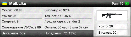 | de_dust2 | 26 | 2.89 | 1.21 | 1 | 14 | 00:21:34 | 04.01.2017 | |