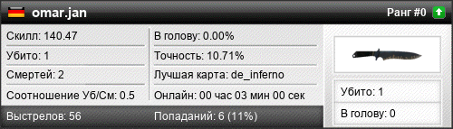| de_inferno | 1 | 0.50 | 0.33 | 1 | 2 | 00:03:00 | 08.01.2017 | |