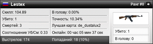 | de_dustalux2 | 1 | 0.33 | 0.18 | 0 | 4 | 00:05:37 | 01.01.1970 | |