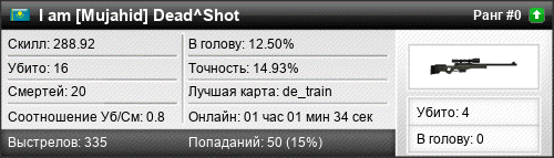 | 07.02.2017 @ 03:56 - 04:37 | de_train | 00:40:48 | 6 | 7 | 0 | 0.00% | 13.01% | 175.17 |
