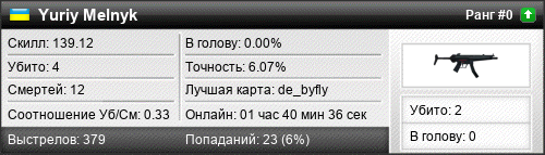 | 13.08.2017 @ 23:29 - 23:53 | de_assault | 00:24:12 | 0 | 0 | 0 | 0.00% | 0.00% | 139.12 |