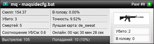 | de_sweat | 2 | 1.00 | 0.67 | 1 | 3 | 00:03:00 | 08.02.2017 | |