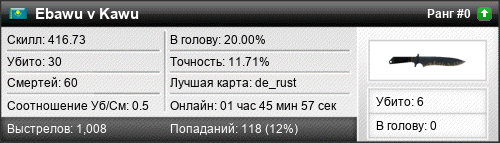 | de_mirage | 0 | 0.00 | 0.00 | 1 | 2 | 00:01:46 | 06.10.2017 | |