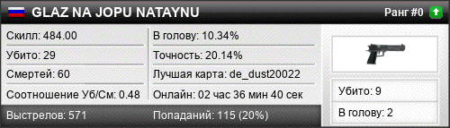 | de_dust20022 | 8 | 0.73 | 0.21 | 2 | 28 | 00:37:34 | 13.03.2017 | |