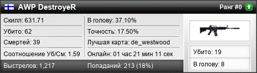 | de_westwood | 33 | 2.06 | 0.92 | 1 | 21 | 00:35:45 | 15.08.2017 | |