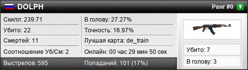 26.03.2017 @ 04:47 - 05:14 de_train 00:26:12 20 9 6 30.00% 16.52% 220.94 Без изменений