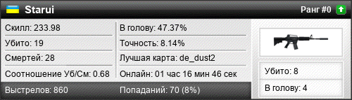 | de_dust2 | 16 | 1.33 | 0.53 | 3 | 18 | 00:30:25 | 07.04.2017 | |