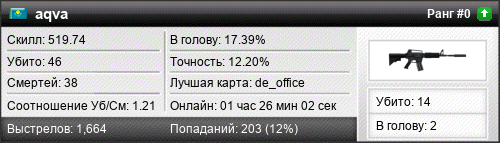 03.04.2017 @ 08:34 - 08:55 de_deadcat 00:20:51 9 13 1 11.11% 22.03% 294.03 Без изменений