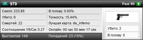 | 14.08.2018 @ 14:13 - 14:35 | de_concrete | 00:22:44 | 0 | 0 | 0 | 0.00% | 0.00% | 114.78 |