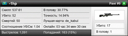 | de_mirage | 7 | 1.17 | 0.62 | 2 | 10 | 00:11:19 | 23.10.2024 | |