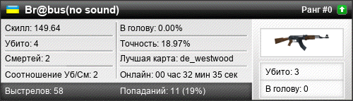 | de_westwood | 4 | 2.00 | 0.91 | 1 | 3 | 00:04:23 | 30.04.2017 | |