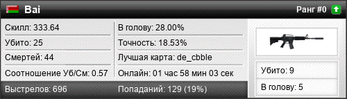 | de_aztecs | 2 | 0.67 | 0.38 | 1 | 4 | 00:05:13 | 23.11.2015 | |
