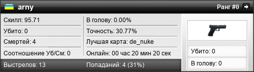 | de_nuke | 0 | 0.00 | 0.00 | 1 | 5 | 00:04:32 | 19.08.2021 | |
