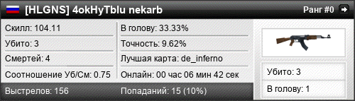 | de_inferno | 3 | 0.75 | 0.45 | 1 | 4 | 00:06:42 | 22.10.2015 | |