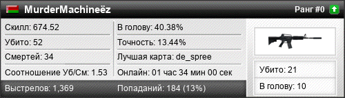 | 22.05.2017 @ 12:01 - 12:50 | de_spree | 00:48:49 | 34 | 24 | 16 | 47.06% | 13.43% | 632.35 |