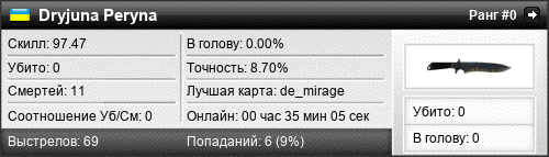 | de_mirage | 0 | 0.00 | 0.00 | 1 | 3 | 00:04:14 | 11.08.2019 | |
