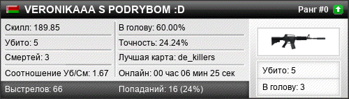 | de_killers | 5 | 2.50 | 0.93 | 1 | 3 | 00:05:24 | 28.06.2017 | |