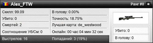 | de_westwood | 0 | 0.00 | 0.00 | 1 | 2 | 00:02:55 | 01.06.2017 | |
